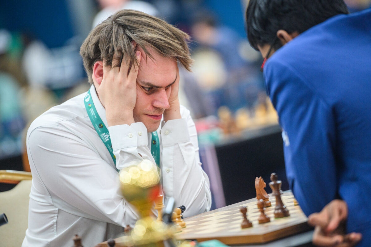 10/4/2025 – Matthias Bluebaum is the man of the hour in international chess. With his second place at the Grand Swiss in Samarkand, the grandmaster from Lemgo has achieved something that no German has managed in around 35 years: to be a World Championship candidate. Following the European Team Championship, where Bluebaum will represent Germany, he will play at the World Cup, where Vincent Keymer still has a chance to jump on the World Championship bandwagon. Holger Hank spoke to Bluebaum for Deutsche Welle in what turned out to be an in-depth interview. | Photo: Michal Walusza / FIDE