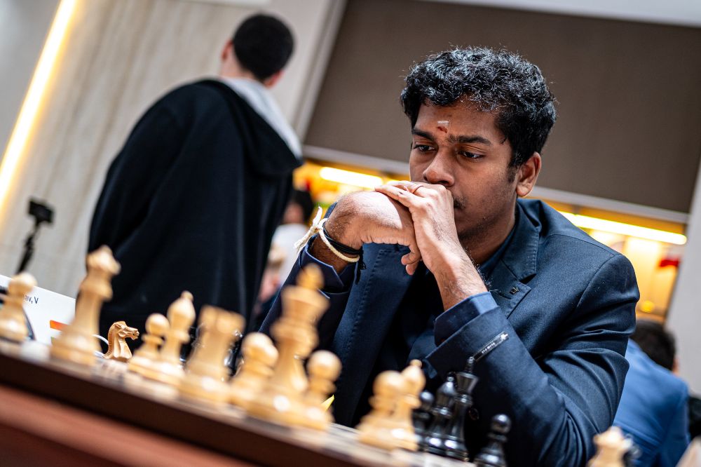 8/27/2025 – The Fujairah Global Chess Championship made its debut in the United Arab Emirates with over 530 players from more than 70 countries competing across three sections. The main event is the Superstars tournament, a nine-round Swiss open which is part of the 2025 FIDE Circuit. The tournament began with notable surprises, including Pranav Venkatesh's (pictured) victory over top seed Nihal Sarin in the first round. | Photo: Vivek Sohani