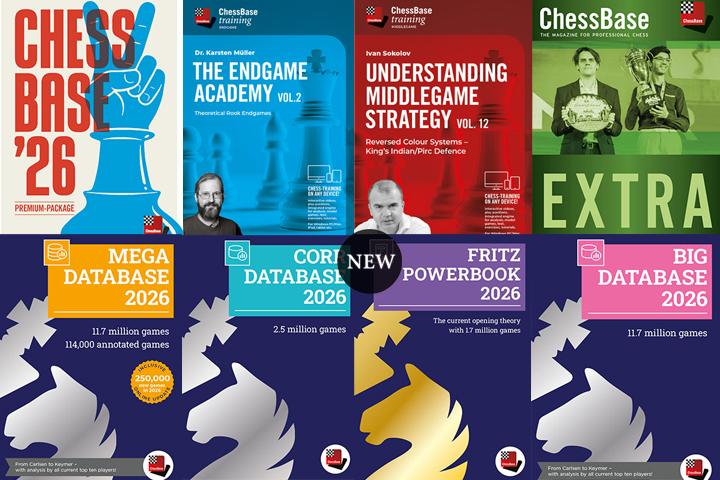 Expand your Chess Horizon The perfect equipment for 2026 with the latest ChessBase program '26, Mega Database, ChessBase Magazine and Premium-Account!