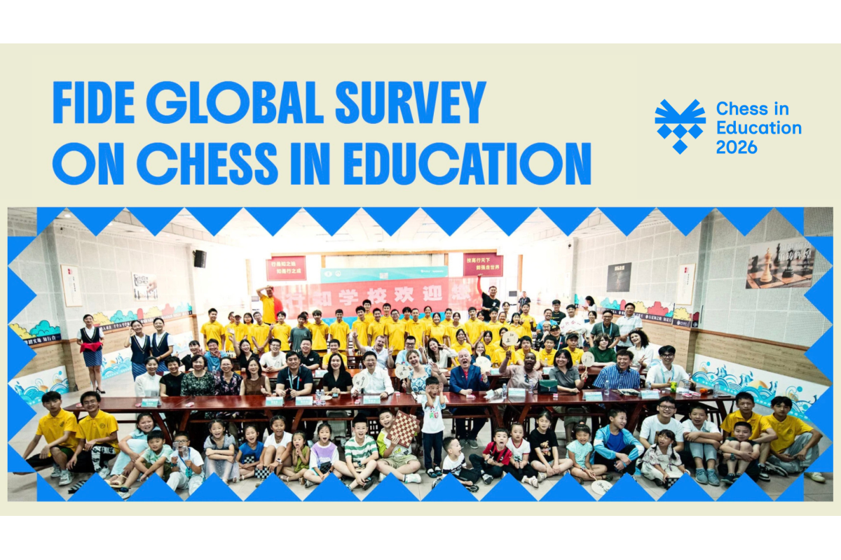 11/23/2025 – FIDE has opened its new Global Survey on Chess in Education, inviting federations, schools and partner organisations to contribute before 28 February 2026. The initiative will inform FIDE's Educational Strategy for 2027–2030, building on the findings of the 2021 survey and the rapid growth of educational chess since. With results to be shared with major international institutions, the survey aims to support policy development and prepare for the 2026 Year of Chess in Education.