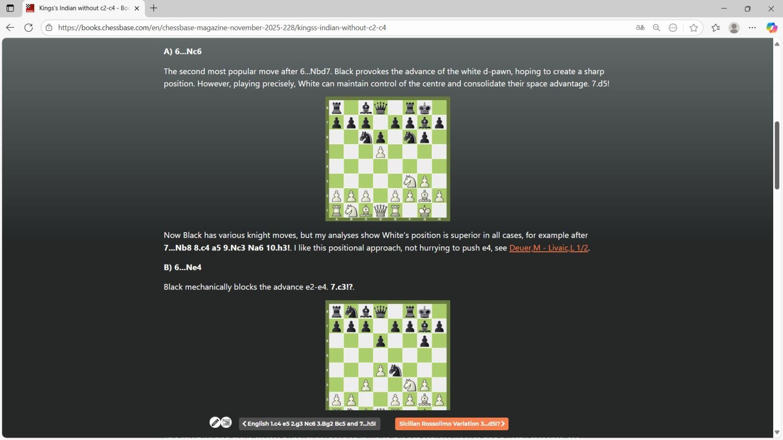 Over 7 hours of video playing time with Felix Blohberger, Rustam Kasimdzhanov, Jan Markos, Mihail Marin, Dr Karsten Müller, Michael Prusikin, Oliver Reeh, Robert Ris, Dorian Rogozenco and Ivan Sokolov – FIDE Grand Swiss 2025: analyses by Giri, Bluebaum, Vaishali, Abdusattorov, Mishra, Vidit and many more – The double block: Mihail Marin highlights scenarios in which it is advantageous to block passed pawns with a knight and bishop – Action in the Nimzo-Indian: Balázs Csonka examines 1.d4 Nf6 2.c4 e6 3.Nc3 Bb4 4.Qc2 0-0 5.e4 d6 6.e5!? – "The key defender": In his ‘Practical Tips for Tournament Players’, Jan Markos shows how to identify and eliminate your opponent's most important piece – All in One: Romain Edouard himself was amazed at how well 1.e4 e6 2.d4 d5 3.Nd2 e5!? works, and much more.