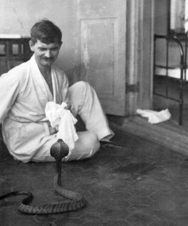 "My father, Alois Friedl, was a 'horologist'—he designed and built chronometers for navigation and assisted a Swiss company in establishing maritime stations in Asian ports. His employer's headquarters were in Bombay. When the war broke out, he, as a German citizen, was placed in a prisoner of war camp by the British. The camp was infested with snakes, and he studied these reptiles together with a leading herpetologist. In fact, together they developed the first antidotes for Indian snake-bites. Alois was granted British citizenship by King George. He married a Portuguese-Indian lady, and I was their first child. He established a research station in the jungles of the Western Ghats, and I spent part of my early youth roaming the jungle, catching reptiles and rodents to feed his snakes. I often visited a tribe of Stone Age people living there. It was a very adventurous childhood."