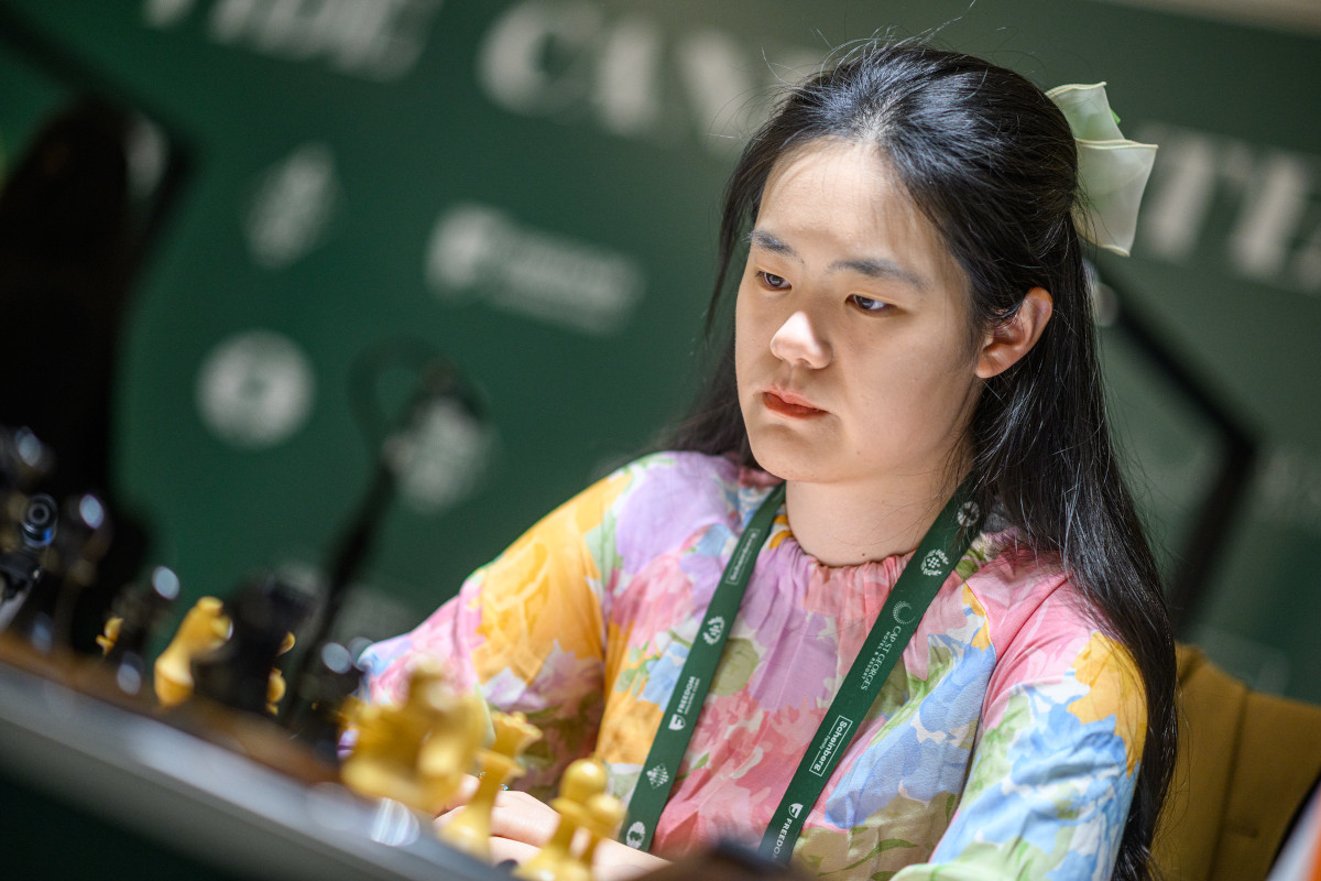 Zhu Jiner's victory over Vaishali Rameshbabu was much more positional in nature. Arising from an Italian Opening, the game saw Vaishali struggle to find a reliable way to equalise.