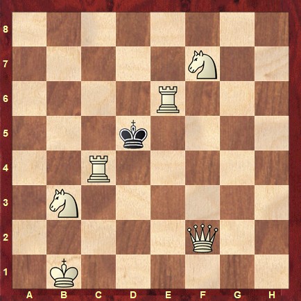 This two-move miniature seems to be very easy: 1.Rb6!? K×c4 2.Qd4#. And that was the "solution" that 223 of 237 readers of the daily newspaper Rhein-Zeitung Koblenz submitted in 2002. However, it was not correct. If you take a close look at the position, you might find the problem that it poses. And thinking about that may lead you to the right solution.