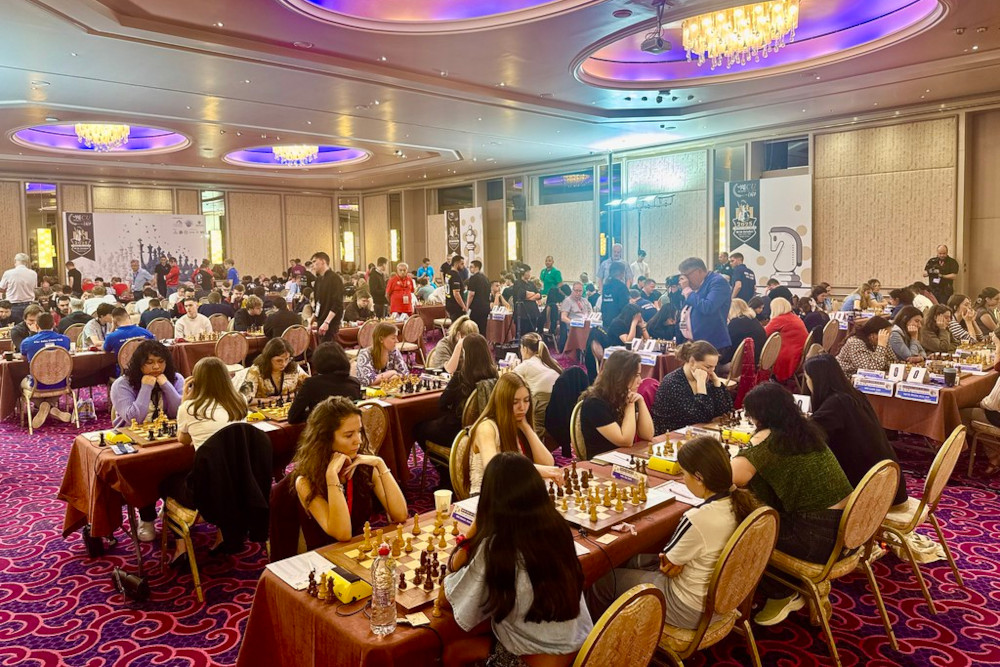 After the opening ceremony, the obligatory meeting with the team captains took place. There is a feeling that the event is somewhat stricter than in previous years, partly due to the Armenian chief arbiter. Among other things, move counters are being used, which are controversial in some chess circles and prone to error. The event is also quite spectator-unfriendly: players must leave the playing venue once their game is over, unlike in previous ECCC editions, when they were permitted to remain in the room for a while to watch their teammates.