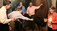 The trademark cider of the tavern is stored in huge vats. Patrons fill