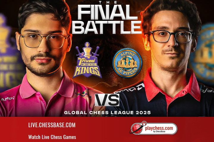 The final round of the round-robin phase of the Tech Mahindra Global Chess League confirmed the lineup for the title match. Alpine SG Pipers, led by Fabiano Caruana, secured their place in the Final despite losing their last match, thanks to a decisive contribution from Hou Yifan. Her victory over Kateryna Lagno proved sufficient to swing the tiebreaks in the Pipers' favour. Their main rivals, upGrad Mumba Masters, were eliminated after a narrow defeat to the runaway leaders Triveni Continental Kings, who finished the phase a remarkable 9 match points clear of the field.