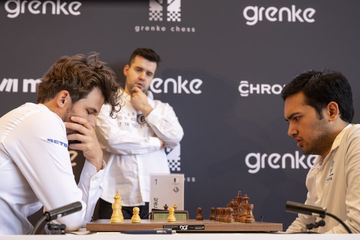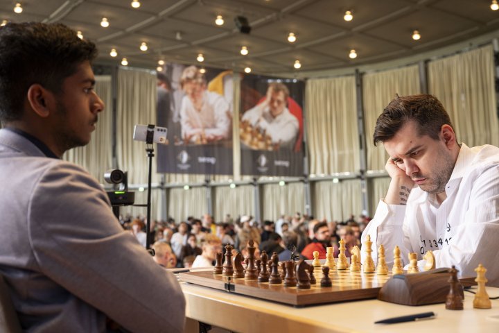 Ian Nepomniachtchi (right, with white) defeated Indian grandmaster Pranav Venkatesh in the final round and thereby moved up to fourth place overall | Photo: Nils Rohde