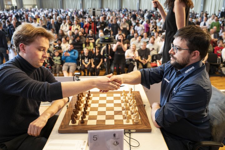 Vincent Keymer and Maxime Vachier-Lagrave at the start of their game | Photo: Nils Rohde