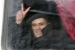 "Freedom! Freedom!" supporters shouted as the bus drove off in central