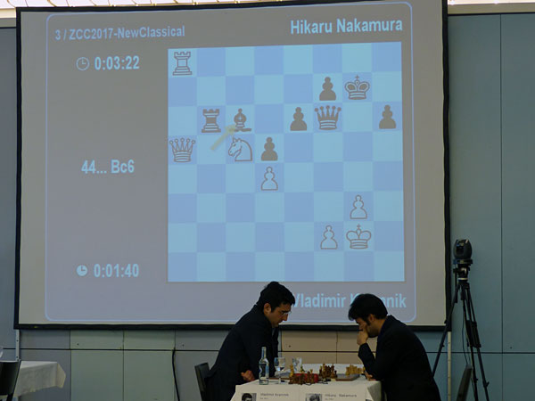 According the rules of the Zurich Chess Challenge 2017 the winner of a classical game is awarded two points for the overall standings. A draw gives each player one point, and the loser gets zero points. In the final Blitz tournament on Monday, 17 April, the winner is given one point, a draw gets half a point, and the loser gets zero points.