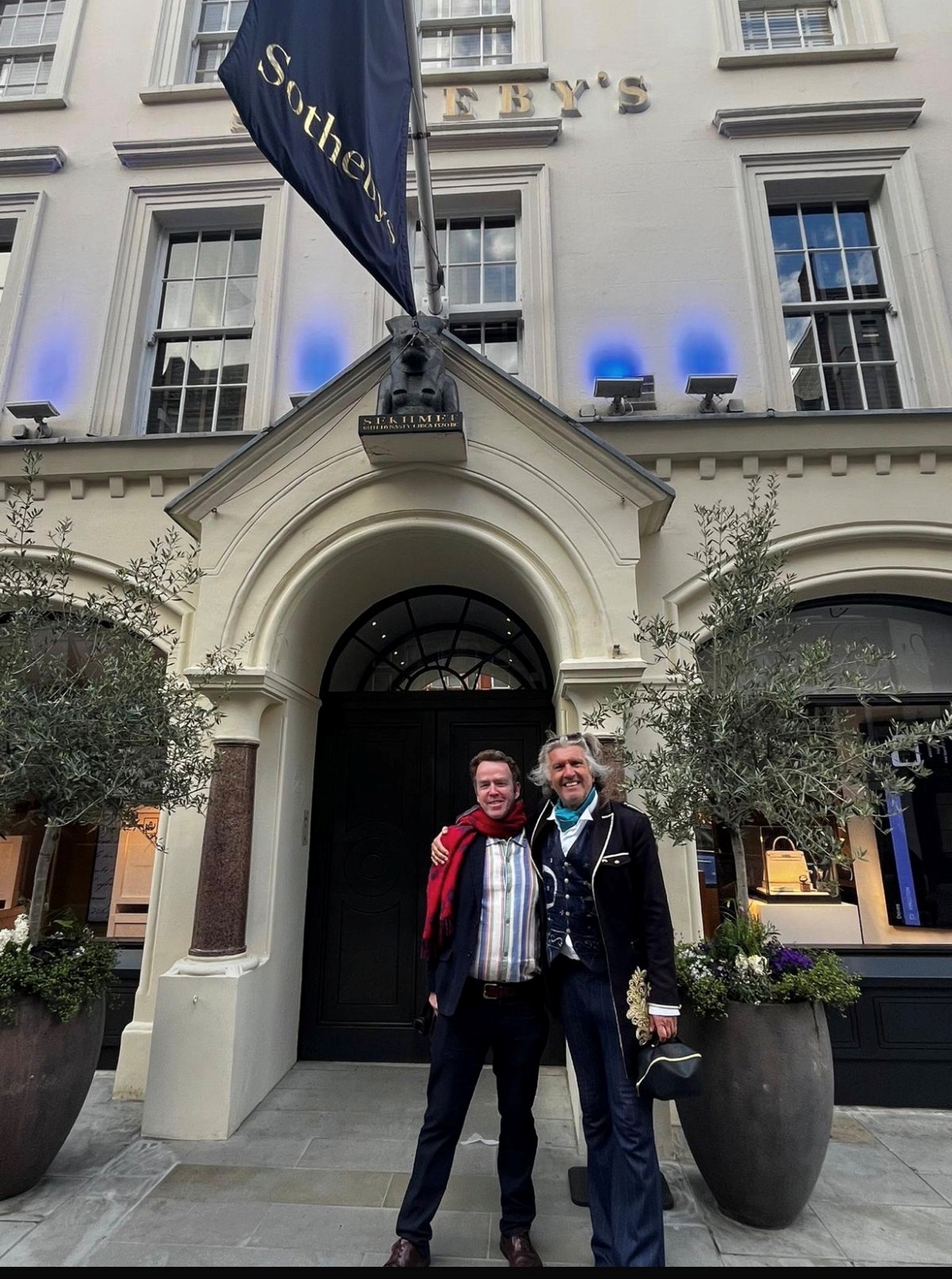 Jason Kouchak congratulates his friend Jonathan Rowson after an inspiring evening at Sotheby's auction house.
