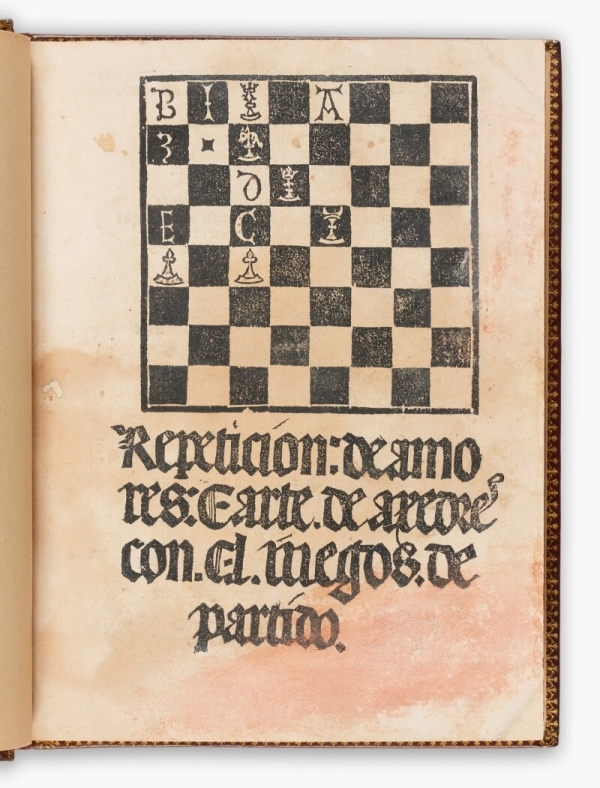 The most important item from Lothar Schmid's collection was one of the few surviving original editions of Lucena's "Repetición de amores y arte de ajedrez" from 1479.