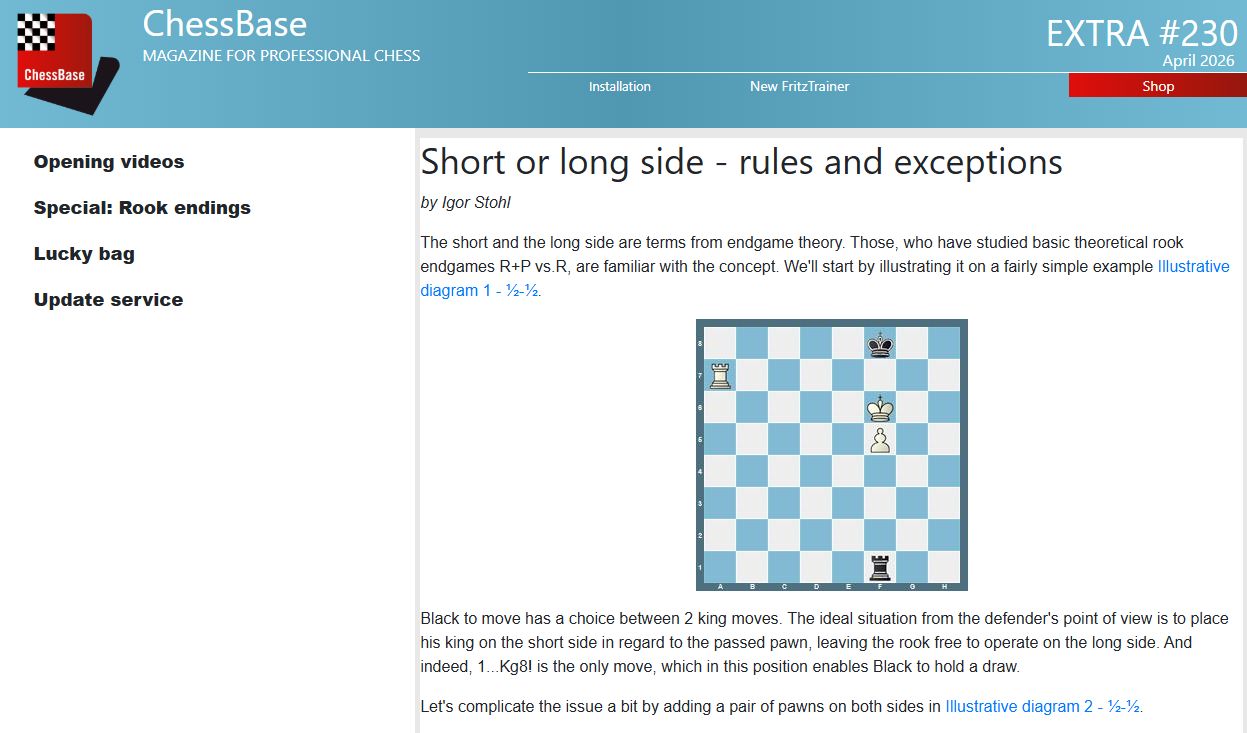 ChessBase Magazine Extra is the perfect complement to ChessBase Magazine. Available as a single issue or subscription (6 issues per year). Available as a direct download.