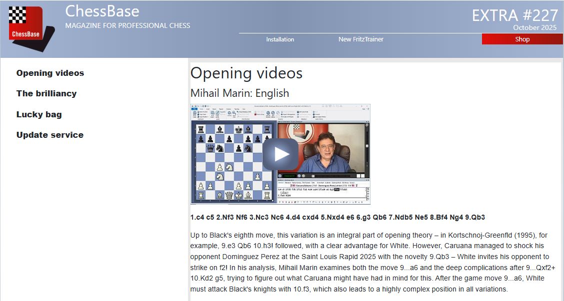 Make yourself comfortable on your iPad or tablet and download the new edition as a ‘ChessBase Book’ (of course you can also do this on your PC, laptop or Mac). All you have to do after purchasing the Extra is to open the page