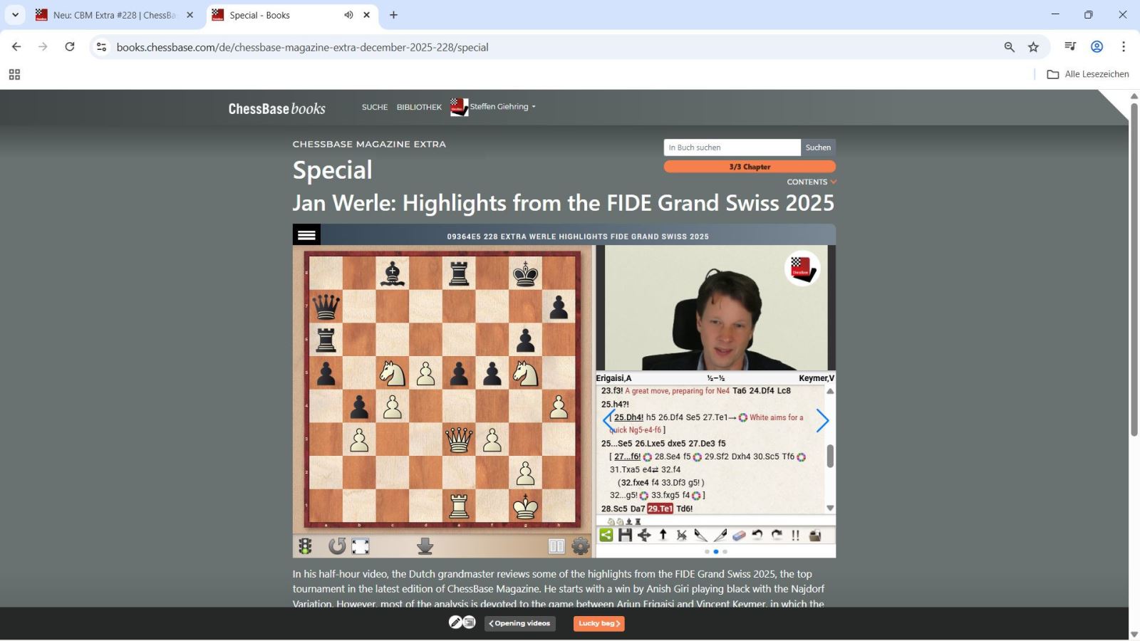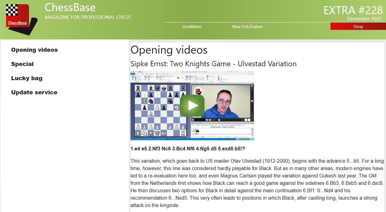 Make yourself comfortable on your iPad or tablet and download the new edition as a ‘ChessBase Book’ (of course you can also do this on your PC, laptop or Mac). All you have to do after purchasing the Extra is to open the page