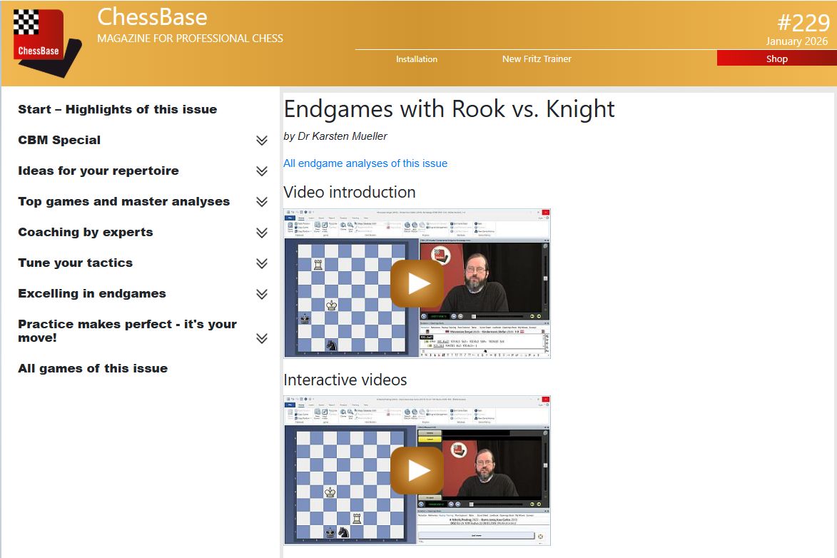 In the introductory video, our expert presents the most important techniques. Then it's your turn in two interactive training videos! Dr Karsten Mueller also presents endgame highlights from the 2025 World Cup (video introduction + analyses).