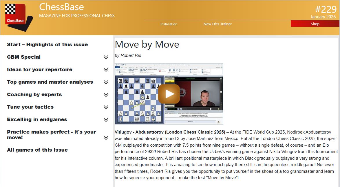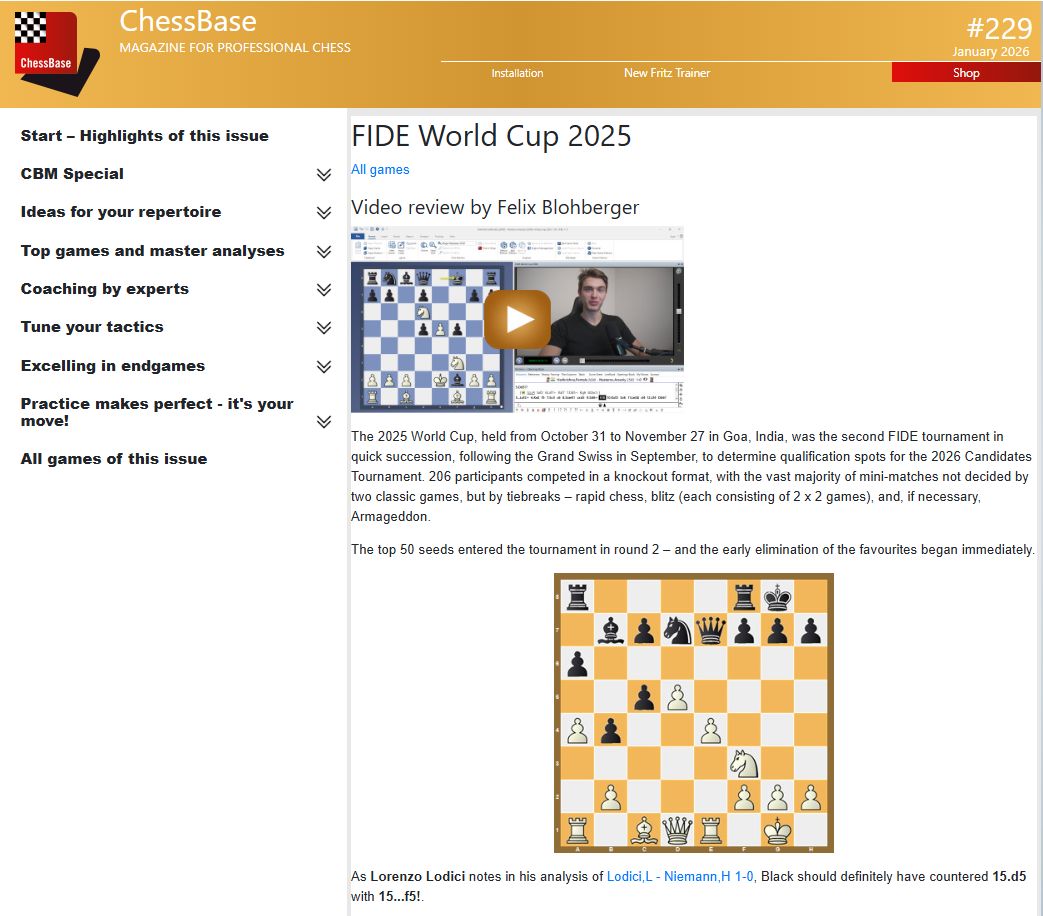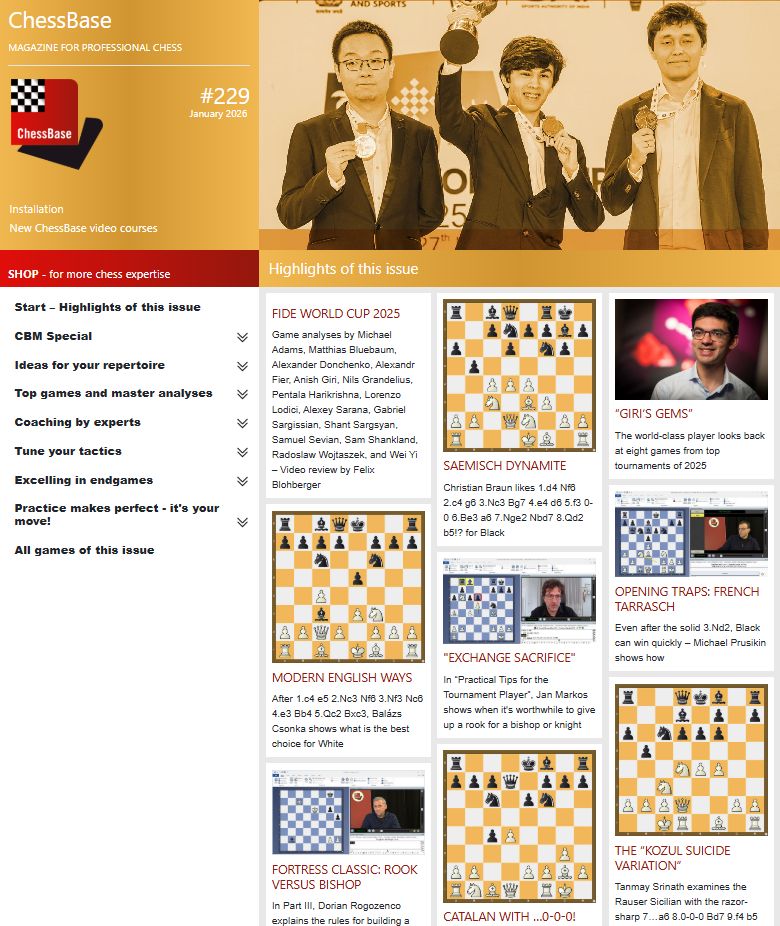 From the FIDE World Cup 2025 to Daniel King's opening video on the Closed Sicilian and Oliver Reeh's tactical contribution ‘Hello e-fine!’ to another fortress classic by Dorian Rogozenco.