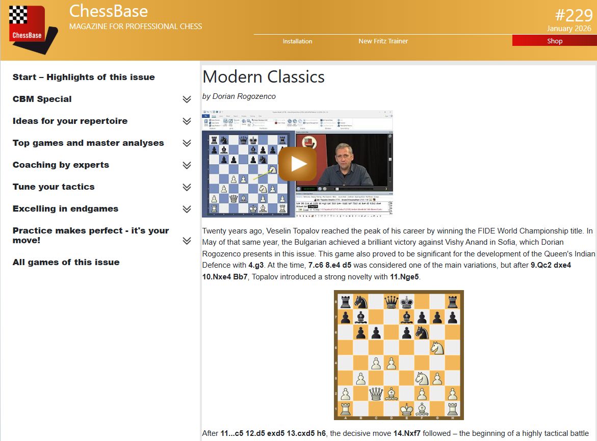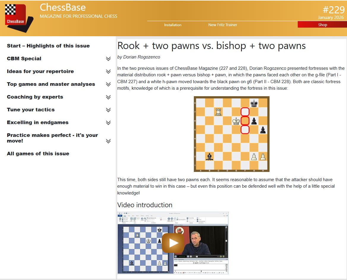* Bonus only for new subscribers, i.e. there was no CBM subscription for 12 months! As a new subscriber you will receive a 20 Euro voucher for the ChessBase Shop!