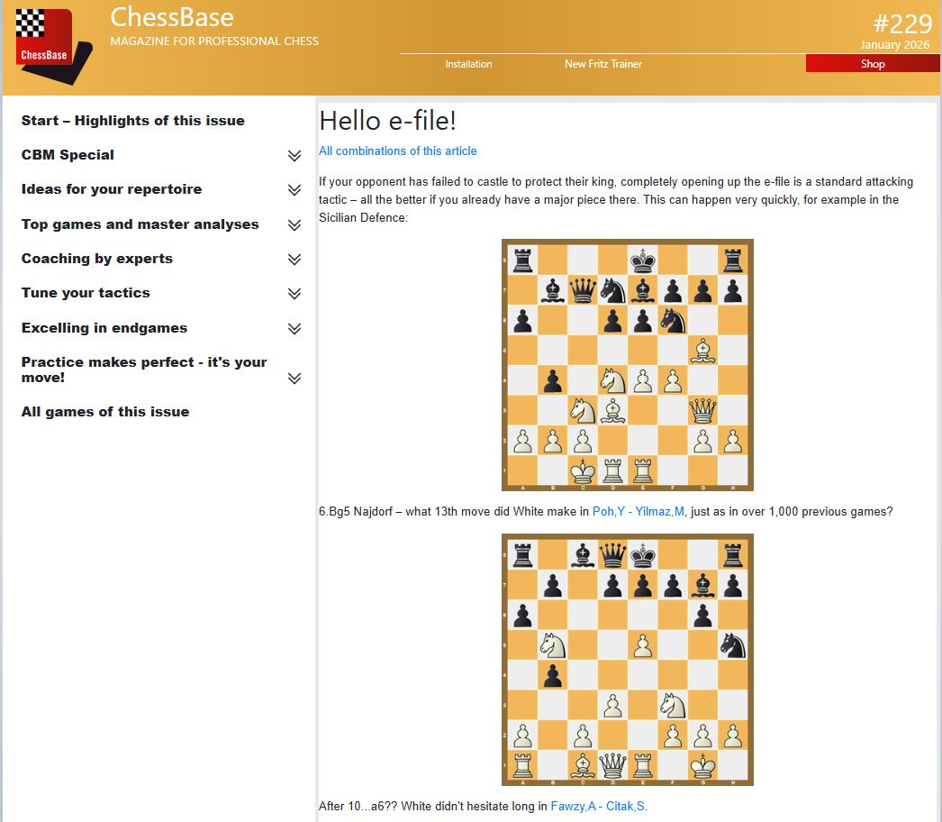 ChessBase Magazine #229 offers 11 opening articles with new ideas for every ambitious player!