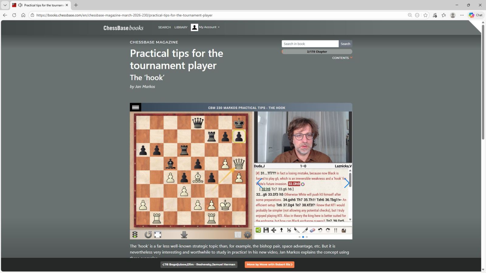 The ‘hook’ is a far less well-known strategic topic than, for example, the bishop pair, space advantage, etc. But it is nevertheless very interesting and worthwhile to study in practice! In his new video, Jan Markos explains the concept using three examples.