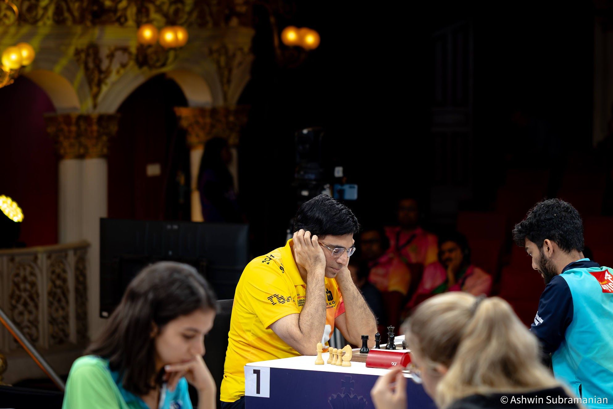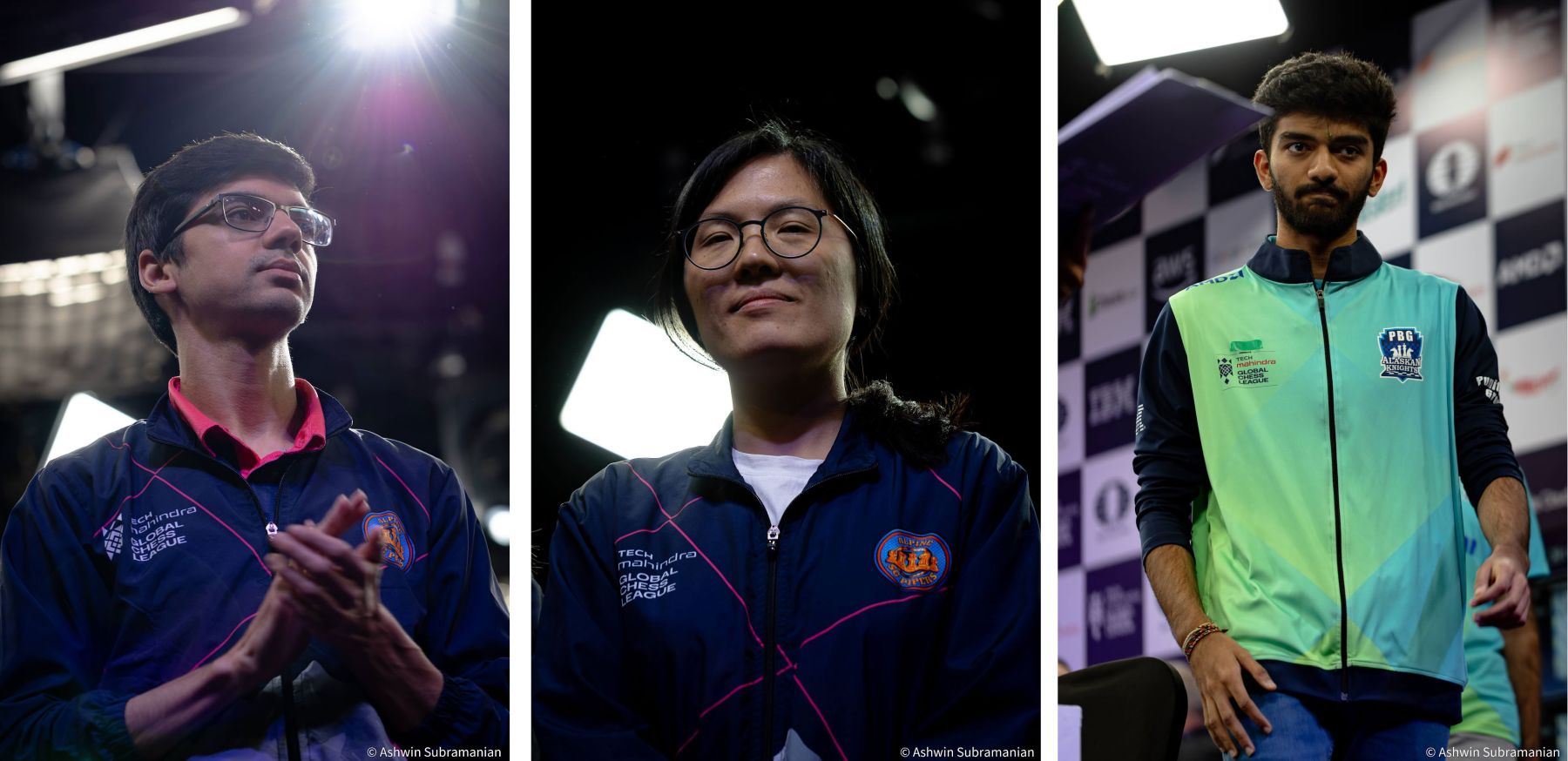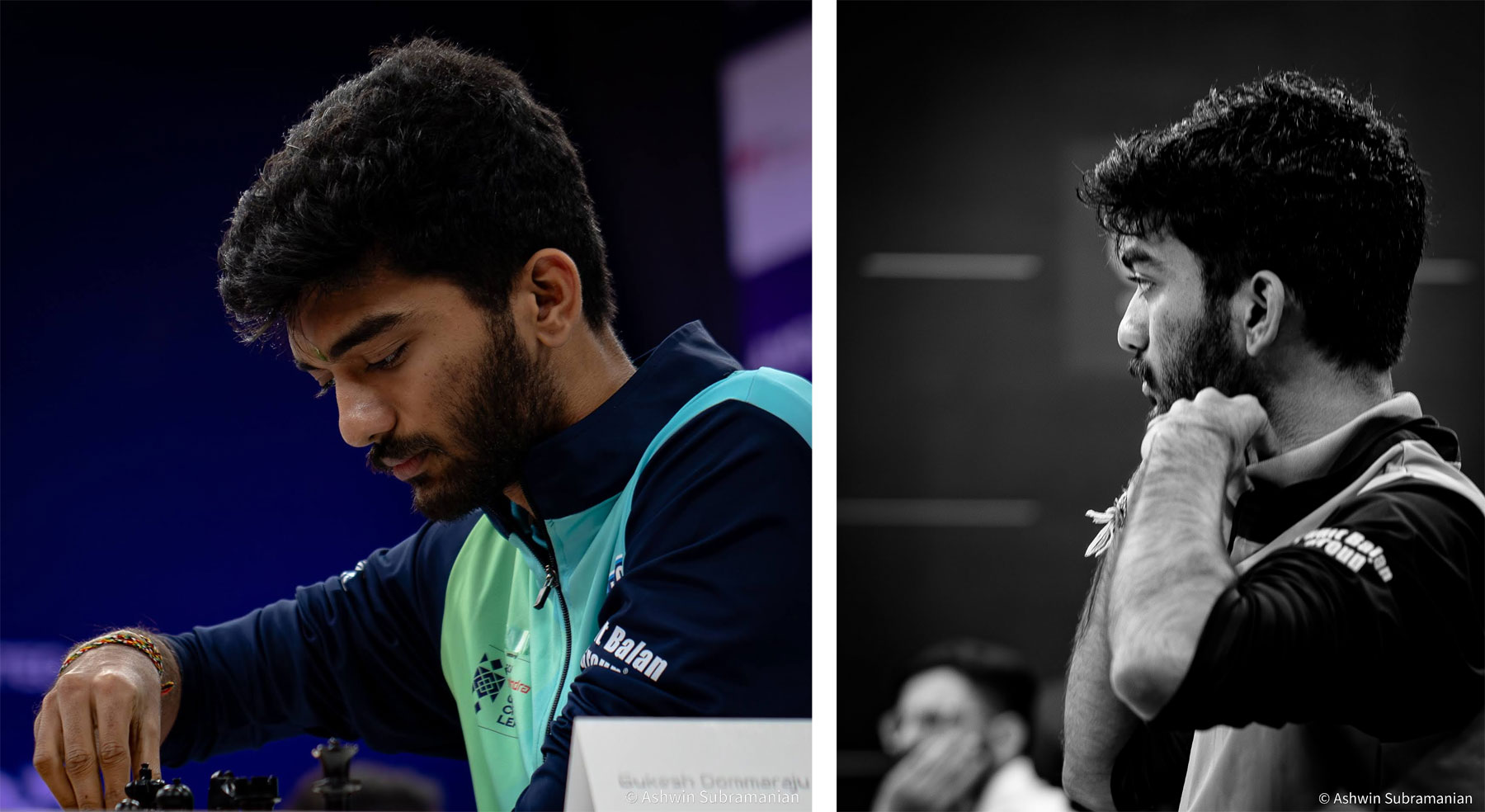 Eventually, I found a way to combine this new-found creative pursuit with my lasting passion for chess, showcasing my portfolio on Instagram (@aksubram). ChessBase India encouraged me tremendously, using a lot of my photos on their news pages, and with this, my chess photography journey truly began. I had the privilege of shooting at Tata Steel Kolkata at all their events from 2019-2024; three WACA events at Bangalore; three Chennai Grandmaster events (2023, 2024 and 2025); two Bangalore GM Chess events (2024 & 2025); the unforgettable 2022 & 2024 Chess Olympiads at Chennai & Budapest; the St. Louis Legends Chess event between Garry Kasparov & Vishy Anand; and now, for the 2nd time at the brilliant spectacle of the Tech Mahindra Global Chess League! Taking inspiration from the incredible chess photography work of Alina L'Ami, David Llada, Stev Bonhage, Lennart Ootes, Maria Emelianova, Amruta Mokal, Niki Riga, Eric Rosen & Michal Walusza, I set out to capture the emotion behind the moves!