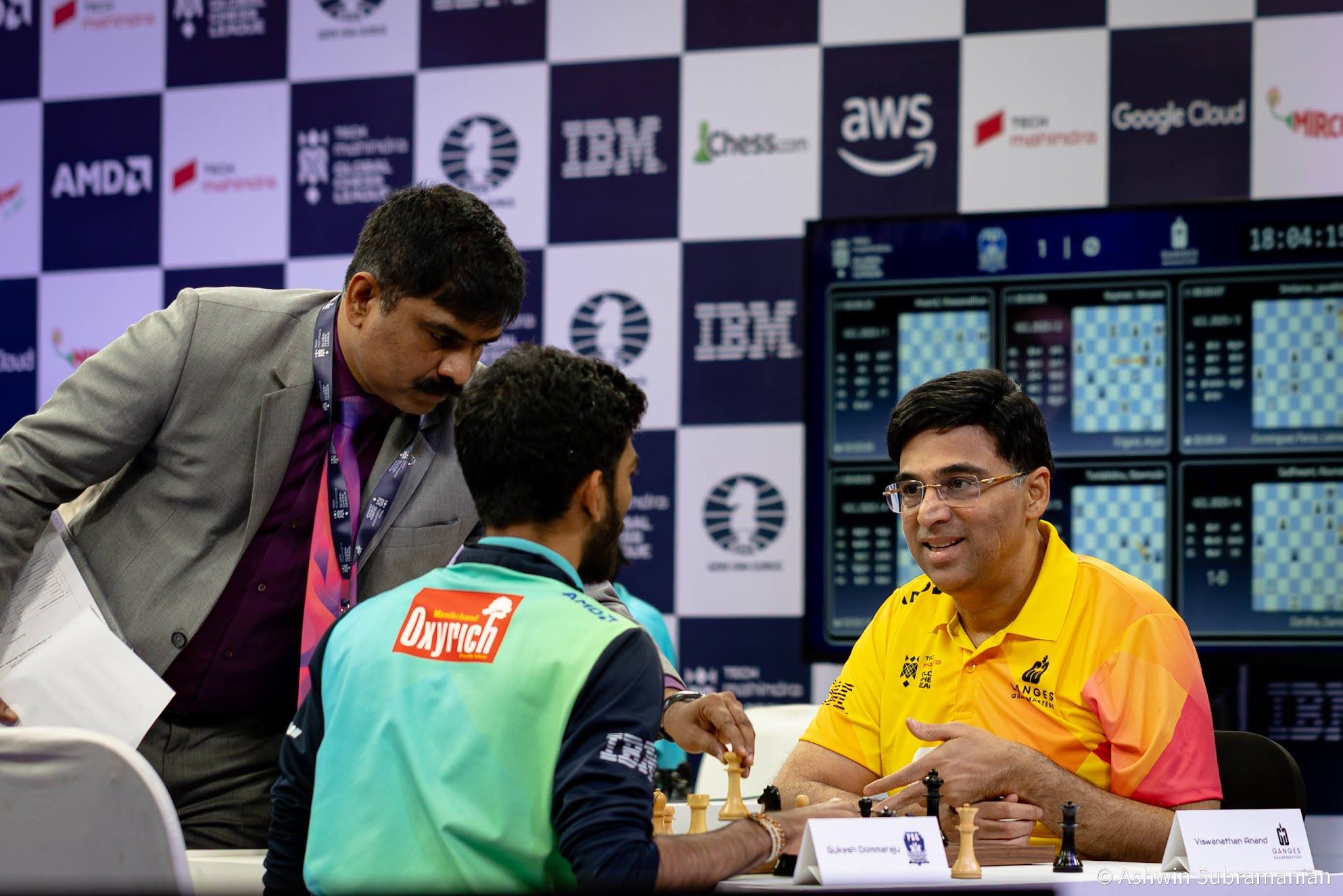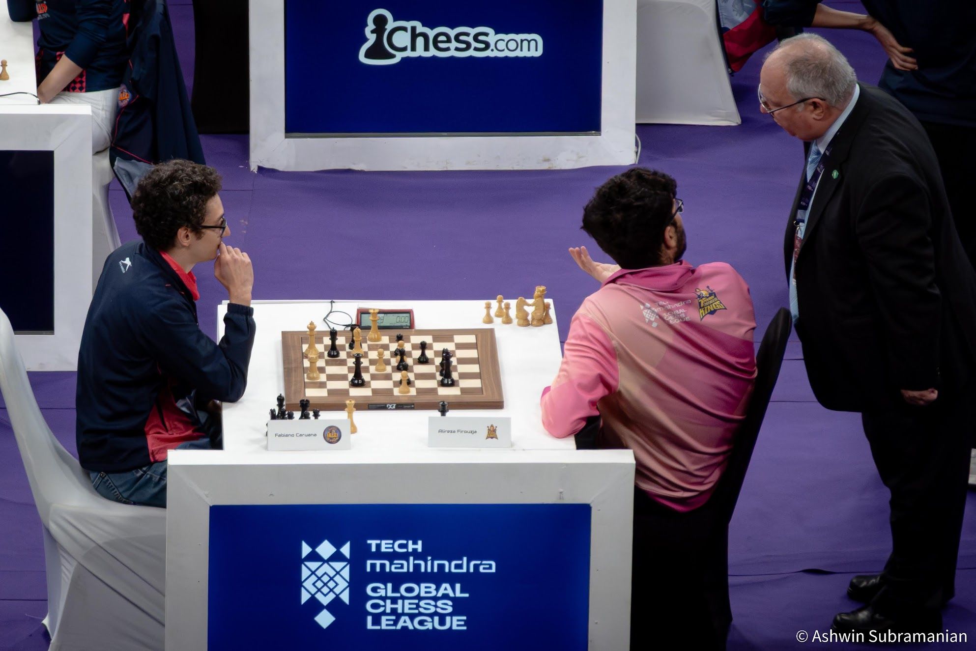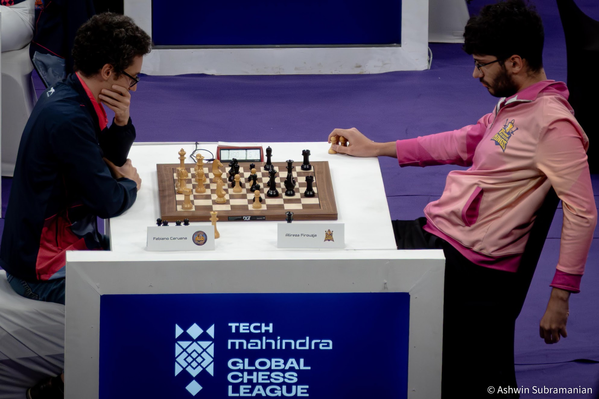 Eventually, I found a way to combine this new-found creative pursuit with my lasting passion for chess, showcasing my portfolio on Instagram (@aksubram). ChessBase India encouraged me tremendously, using a lot of my photos on their news pages, and with this, my chess photography journey truly began. I had the privilege of shooting at Tata Steel Kolkata at all their events from 2019-2024; three WACA events at Bangalore; three Chennai Grandmaster events (2023, 2024 and 2025); two Bangalore GM Chess events (2024 & 2025); the unforgettable 2022 & 2024 Chess Olympiads at Chennai & Budapest; the St. Louis Legends Chess event between Garry Kasparov & Vishy Anand; and now, for the 2nd time at the brilliant spectacle of the Tech Mahindra Global Chess League! Taking inspiration from the incredible chess photography work of Alina L'Ami, David Llada, Stev Bonhage, Lennart Ootes, Maria Emelianova, Amruta Mokal, Niki Riga, Eric Rosen & Michal Walusza, I set out to capture the emotion behind the moves!