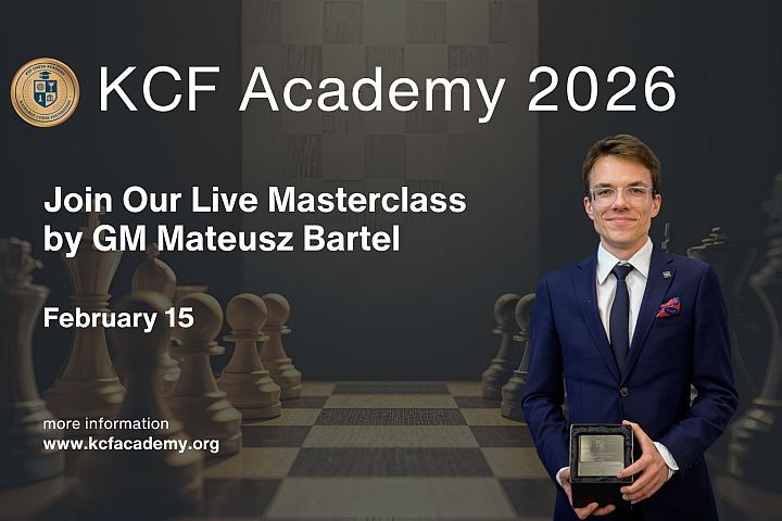 KCF Academy subscribers can expect an interactive, in-depth training session featuring high-level analysis, practical examples from top-tier games, and opportunities to engage directly with GM Bartel during the live lecture.
