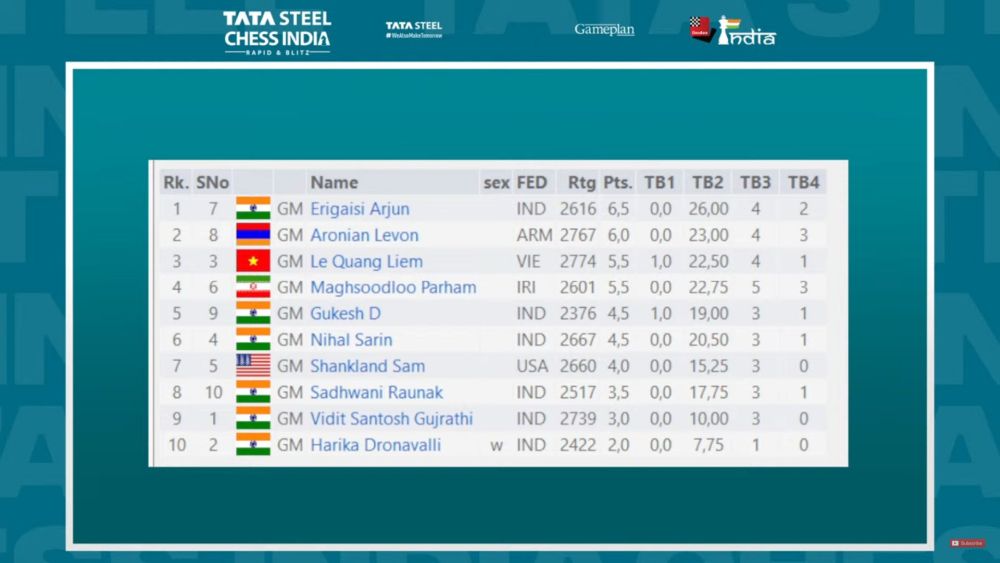 In the previous edition, Magnus Carlsen won both Rapid and Blitz section of Tata Steel Chess India 2019. Arjun Erigaisi seems to be on the path to etch his name in history in the same line as the world champion. If he manages to achieve this feat, it will be something that cannot be broken, only tied further by future players. However, one must keep in mind that six players have played 18 games in a span of four consecutive days. It is quite obvious that tiredness and fatigue is developing. Arjun however seems to have plenty left in his tank.