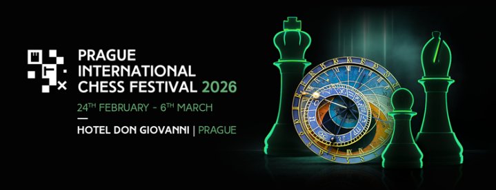 The eighth edition of the Prague International Chess Festival will take place from 24 February to 6 March 2026 at the Don Giovanni Hotel Prague. The festival features elite tournaments, everyday morning tournaments, and attractive side events. The closing ceremony will take place on Friday, 6 March 2026 at 18:00.