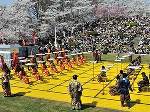 Human shogi match in Yamagata, on a mountain with cherry blossoms in full bloom