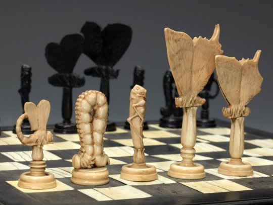 Dr. George & Vivian Dean. Insects Chess Set and Board, c. 1790.