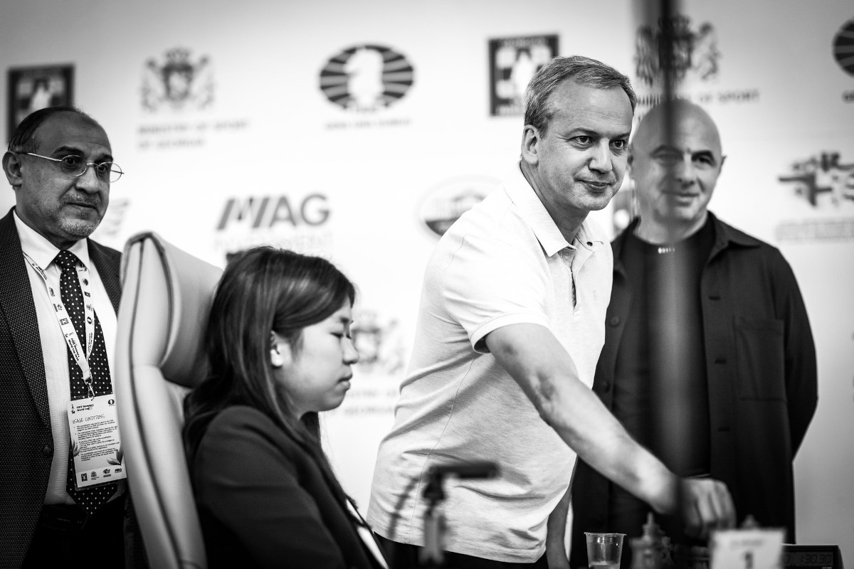 At 3:00 pm sharp, the Chief Arbiter Mahdi Abdulrahim introduced Georgian Federation President Akaki Iashvili and FIDE President Arkady Dvorkovich, who performed the ceremonial first move on board number one.
