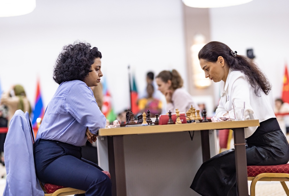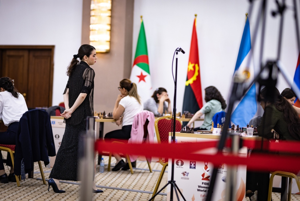 7/10/2025 – Twelve matches at the FIDE Women's World Cup will be decided in Friday's tiebreaks after a tense day of chess saw both solid draws and dramatic turnarounds. While many favourites, including Lei Tingjie, Humpy Koneru and Tan Zhongyi, secured qualification, others must battle again for a place in round three. Meanwhile, 15-year-old WFM Elnaz Kaliakhmet caused the day's biggest upset by eliminating Georgian GM Nino Batsiashvili. | Photos: Anna Shtourman, Polina Bovina and Andrei Anosov / FIDE